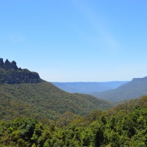 C’est à une heure de route de Sydney dans les Blue Mountains que nous usons probablement pour la dernière fois de ce tour nos chaussures de rando… mais rien n’est jamais certain ! Ces petites montagnes culminant à 1.100 mètres d’altitude doivent leur nom à la canopée bleutée créée par les essences volatiles des forêts d’eucalyptus. Nous passerons deux jours à explorer les célèbres formations rocheuses des « three sisters », les gorges et cascades de ce parc national.